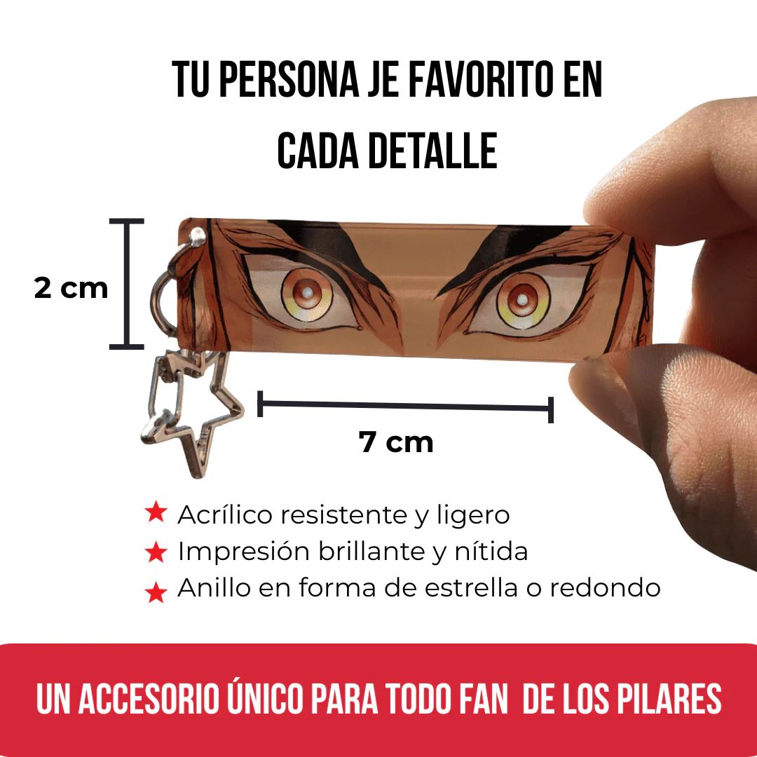 Nuestros llaveros están fabricados con acrílico resistente y duradero, diseñado para que el brillo de los ojos no se desgaste ni pierda color con el sol. No es un llavero genérico: está pensado para que lo uses todos los días sin preocuparte.